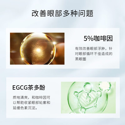 特别添加5%的高浓度咖啡因,可以促进眼周循环,减少眼部水肿。完备的临床配方制作,男女都适用,精致呵护眼周。