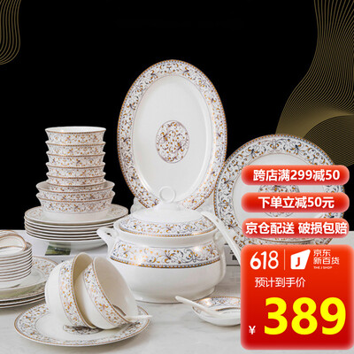 浩雅骨瓷简约碗碟套装
