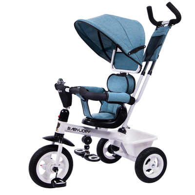 车轮内设导向系统,避免卡到儿童双脚,免充气钛空轮胎防滑减震,推杆及遮阳篷均可拆卸,轻便易携带。
