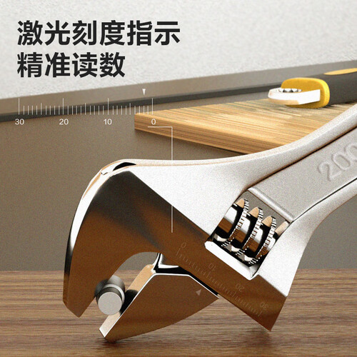 采用高碳钢材质锻造,表面镀铬,强度高,美观大气。表面激光刻度,读数准确。蜗杆螺母,开合灵活不卡顿。