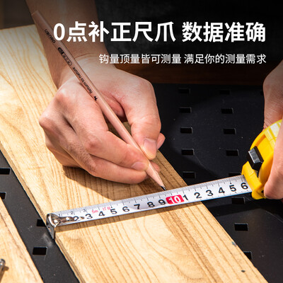 碳钢材质作为卷尺核心,强度高且回收快速顺畅。尺带滑钮锁止设计,锁止便捷,测量安全,不易割伤手。