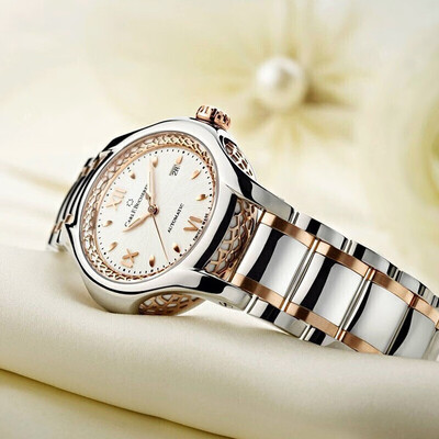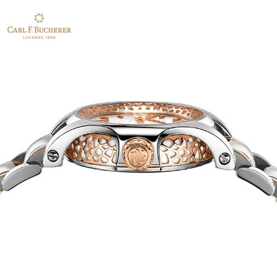 表圈及表壳配以精美雕花加以装饰,富有立体层次感,时尚好卡;融合浪漫玫瑰金配色,色彩清新有光泽,更有轻奢气质。