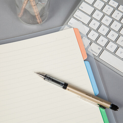 可轻松更换内页的设计方便实用,可以适应你不同的需求。4种颜色的分类标签可以标注类型,快速寻找所需材料。
