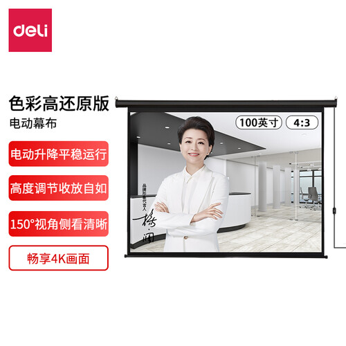 得力 电动调节投影幕布