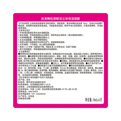 高含量的丰富美容液,引导肌肤的角质代谢的加强,从而让肌肤恢复弹性。蛋白质物纤维等成分添加,令肌肤吸收更有效,更水润肤感。