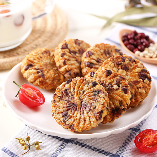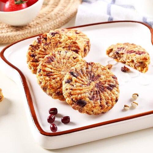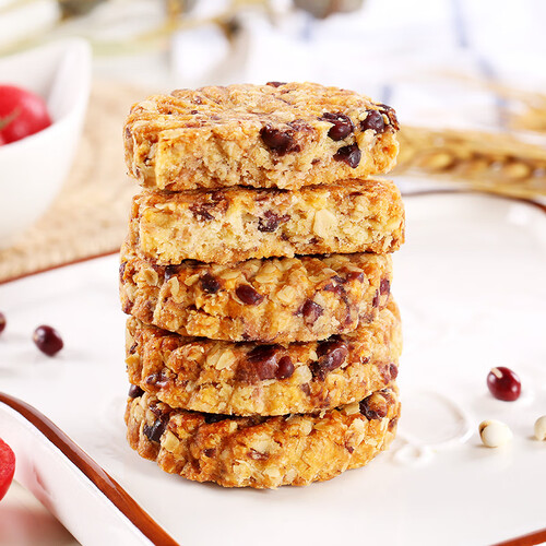精选五谷粗粮科学搭配制作,含有丰富的膳食纤维,并且不添加蔗糖,轻盈少负担。燕麦粗糖与红豆的结合,成就松软醇香的全麦饼干。