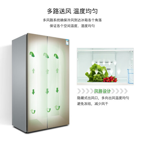 搭载多风路系统,可以使得冷风均匀贯彻到冰箱的每一个角落。内置变频压缩机,能够自动调节温度,省电节能。