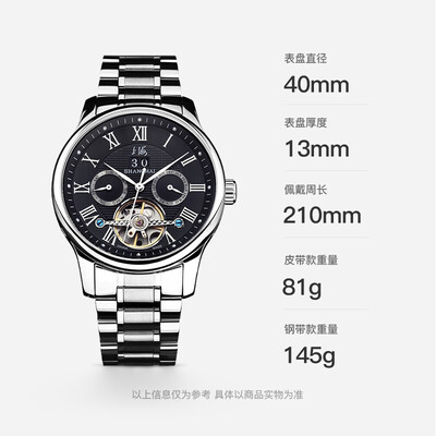 采用滴水隔油技术,满足日常防水需求,无惧进水损坏淘汰。表身选用316L精钢打造,辅与拉丝工艺,质感与触感并存。