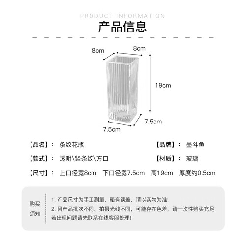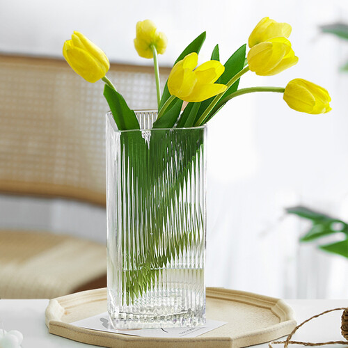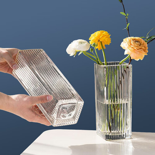 透明玻璃花瓶制作精细,口袋造型设计美观大气,彰显气质。圆润光滑的瓶口便于插花,帮助增添生活的视觉触动。
