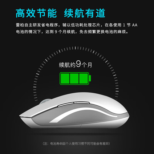 鼠标精致小巧,两侧内凹,给手指提供承托,长时间操作舒畅自如。静音设计,更有效减少噪音。