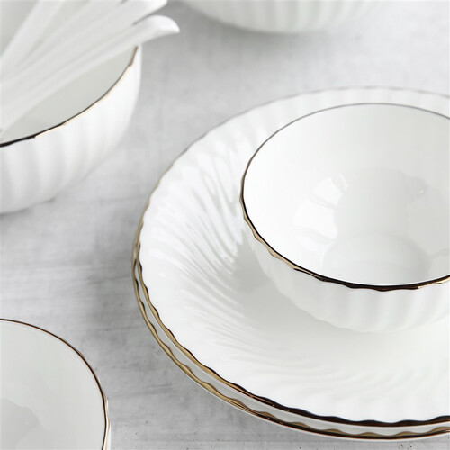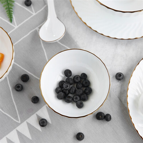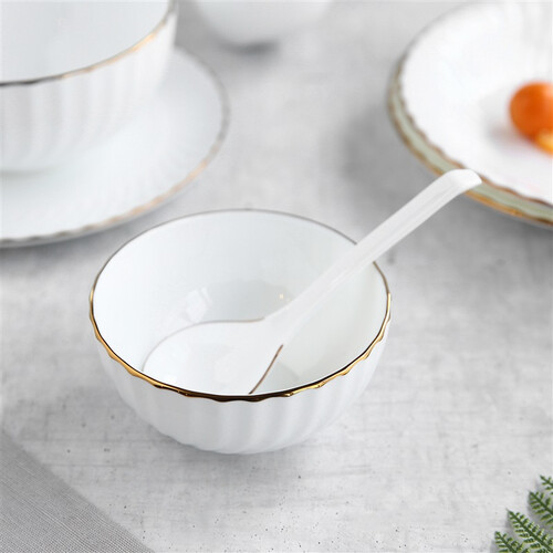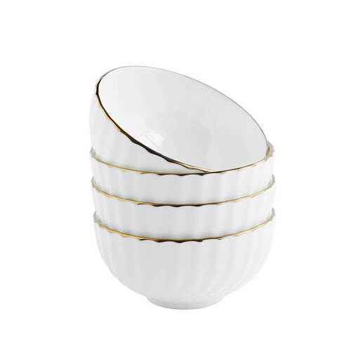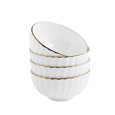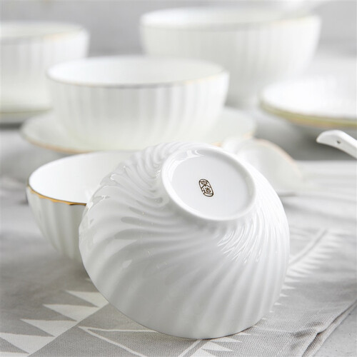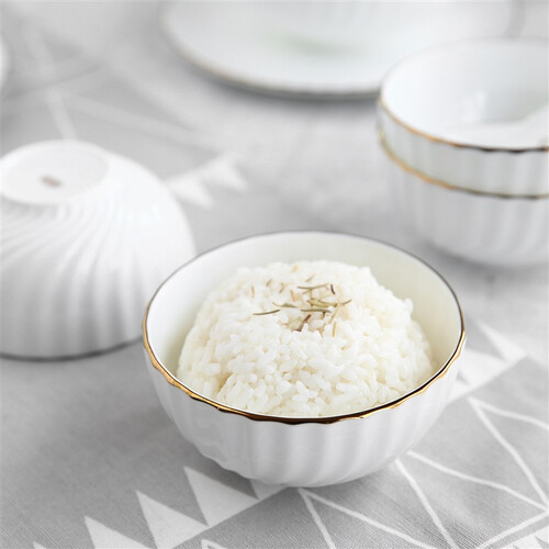 精心设计制作饭碗,采用骨质瓷为原材料,经两次烧制而成,色泽洁白如玉般精美,其还有描金修饰,典雅又有种奢华感,炫目迷人。