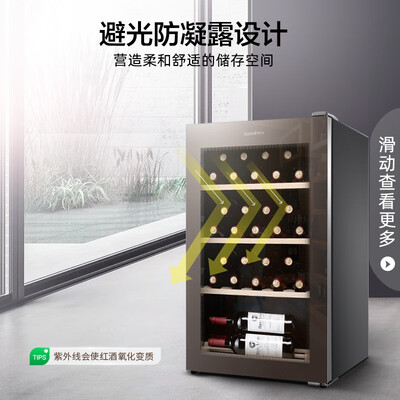 优选品质压缩机,持续输出澎湃动力,却又不会发出噪音,并且还可以避光防凝露,既看得清红酒,又能够隔绝光线。