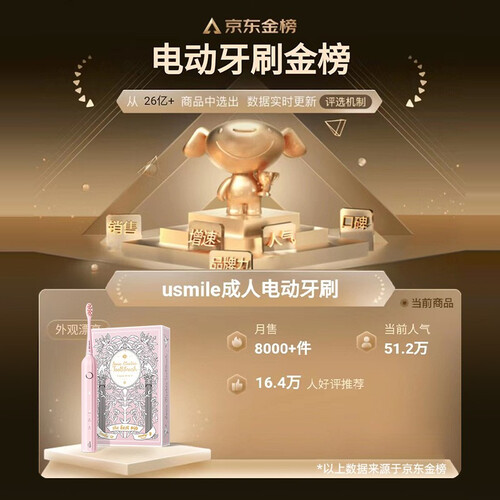 续航黑科技,充电一次可用半年。3D弧面设计,净齿更全面,柔细的软毛,呵护敏感牙龈。IPX7级双重防水,放心冲洗机身,自在淋漓。