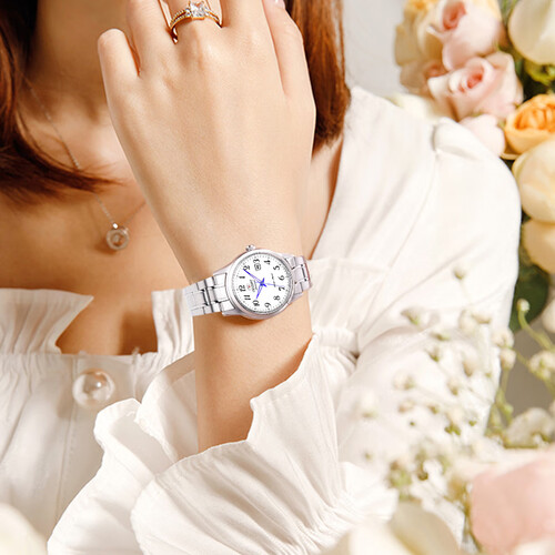采用玫金指针,展现独具一格的设计风格,佩戴更加时髦亮眼。搭载经典的大三针设计,读取时间更加方便,好品质值得拥有。