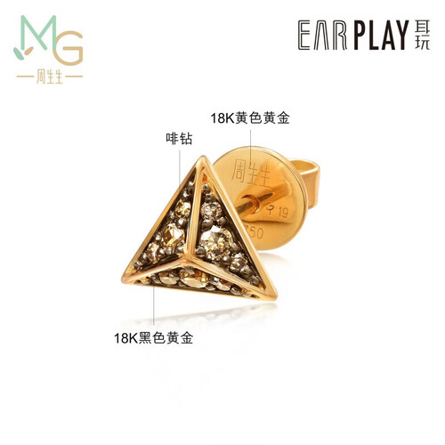 闪耀钻石点缀立体金字塔形耳钉,构思巧妙,别致吸睛,时髦亮眼。主体优选18K金材质材质制作,硬度高,不易变形。