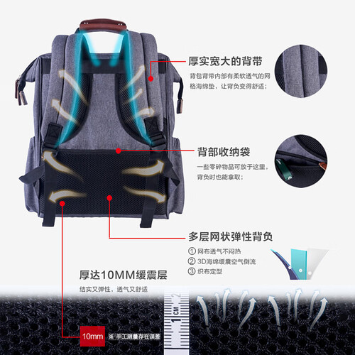 双肩包背部采用多层网状缓震层设计,结实有弹性的同时透气又舒适,久背不闷更不累。外置多口袋造型设计,丰富时尚层次感又实用。