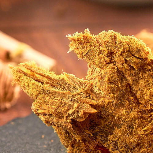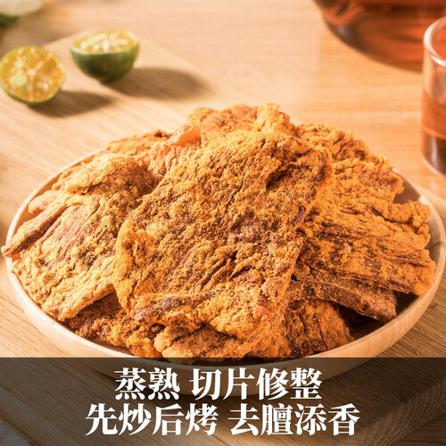 这一款牛肉干加入沙嗲粉成分,有效去膻添香,再以数十道严苛工艺制成,保证干湿适口。精选牛后腿肉,去皮去筋,肉感细腻。