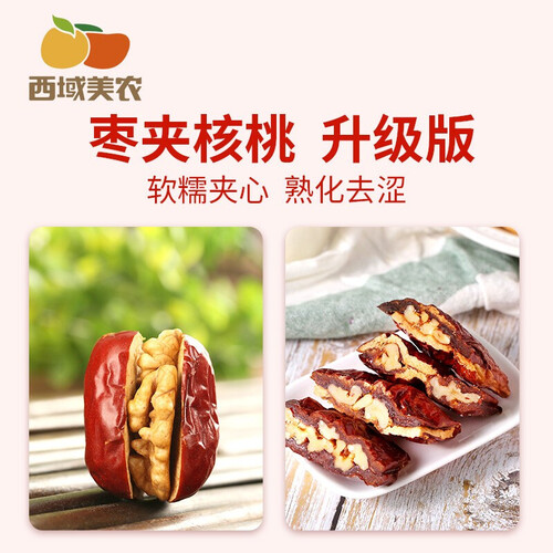 枣夹核桃果肉十足,吃着还有甜度,让人回味无穷。熟果可以直接吃,也可以用它煲汤或者做甜点,食用多样化。