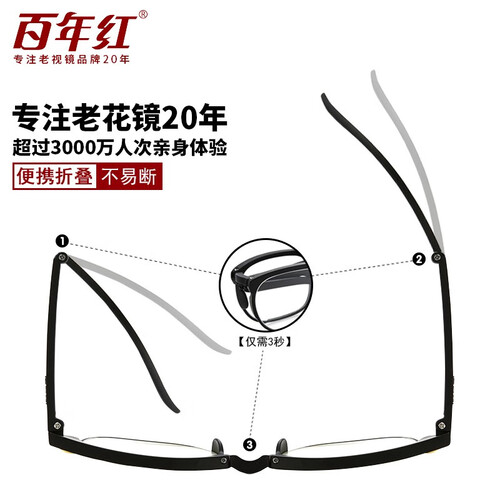 百年红折叠便携式老花眼镜