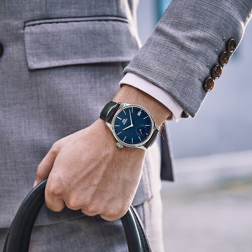 内置的表盘采用了深邃的蓝色搭配,经典百搭,蕴藏男士干练儒雅的气质。搭配人工合成的蓝宝石表镜,硬度更高,耐磨防刮花。