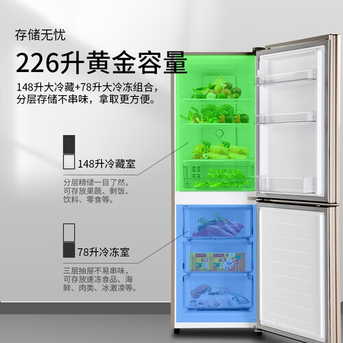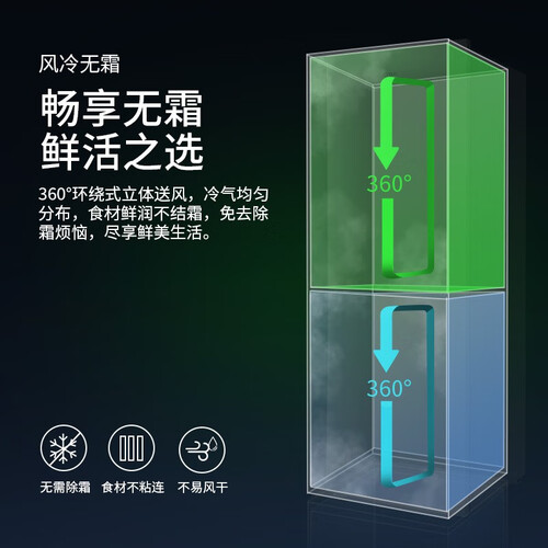 采用风冷科技,蒸发器自动除霜,告别除霜烦恼,使用方便,食物保持水嫩,不结霜,不黏连,时刻满足全家人保鲜需求。