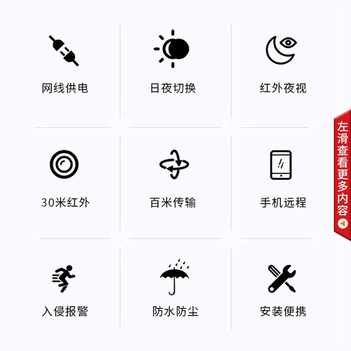 支持手机远程观看,随时随地,随心查看家中监控情况。30米红外补光技术,补光均匀,夜间监控无担忧。