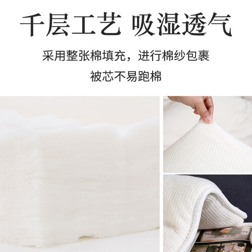 精选天然新疆好棉,自带棉花香味,让被子盖在身上舒适清新。选用了加密网纱包裹,可加固被芯,防止泡棉,让被子结实耐用。