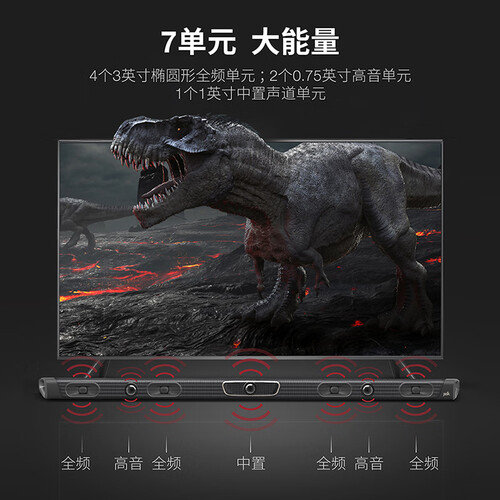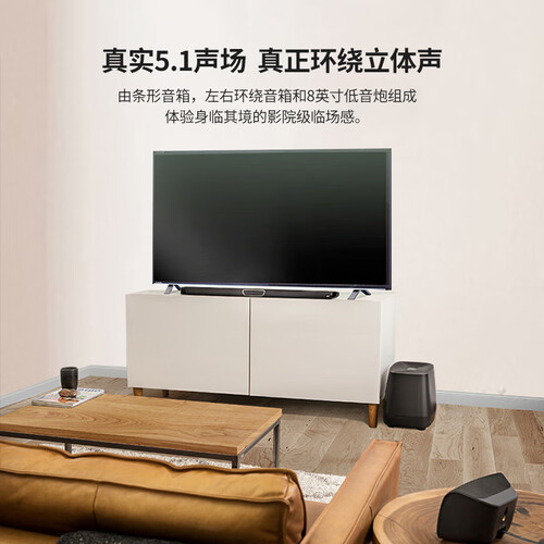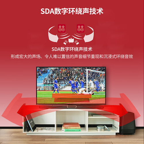 5.1声场技术,左右环绕音箱和低音炮组成,让观看电影仿佛身临其境。SDA宽声场多维阵列技术,让声场宽广,音质清晰明亮。