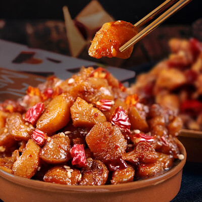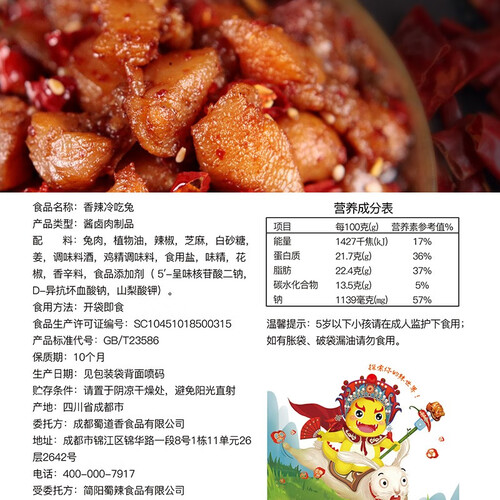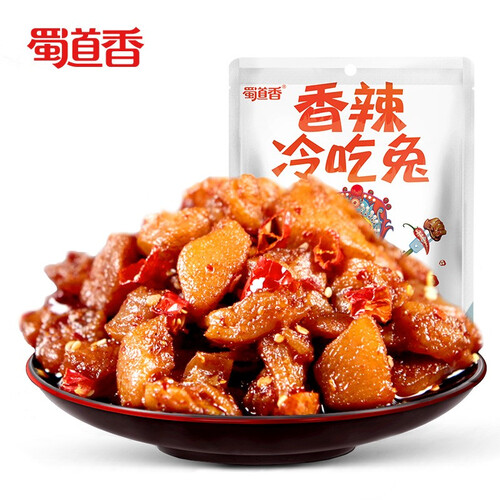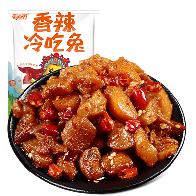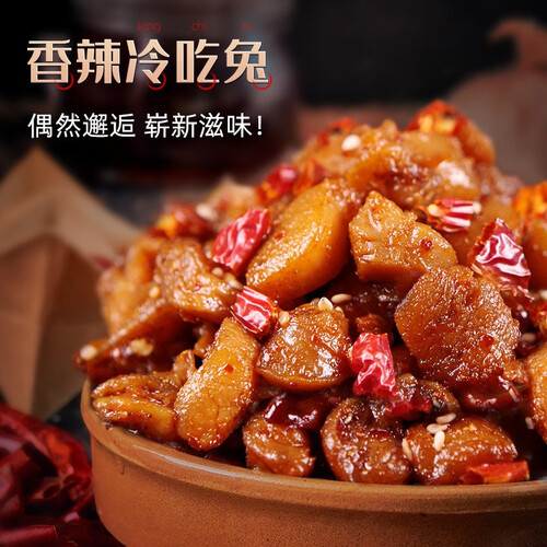 精选辣椒、植物油、芝麻等配料,配制出鲜辣爽口的香料,腌制出来的兔肉鲜爽入味,色泽金黄,十分诱人。