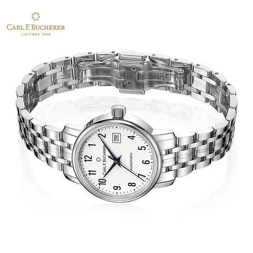 采用精钢表链,佩戴舒适轻松无压力,结实耐磨不易断。黑色数字时标搭配蓝钢指针,精美时尚,打造精致穿搭。
