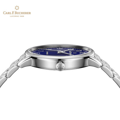 幽深静谧的蓝色表盘配上白色数字时标,让人联想到了星辰大海。表壳与表带在制作上采用了磨砂与抛光工艺,让腕表更具光泽感。