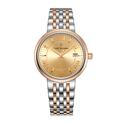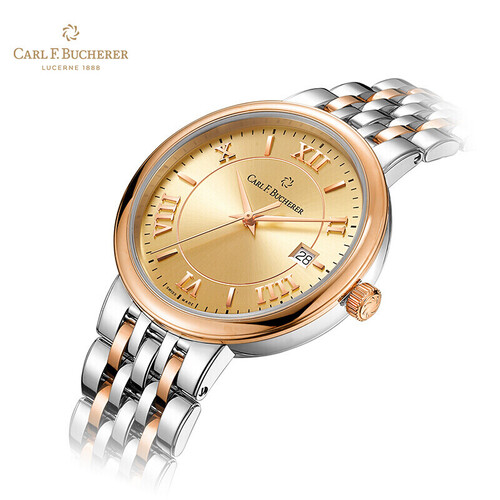 爱德玛尔系列手表以18k玫瑰金和不锈钢两种材质组合设计,银色和金色色泽交织,更具时尚美感。还有日历窗口,更方便实用。