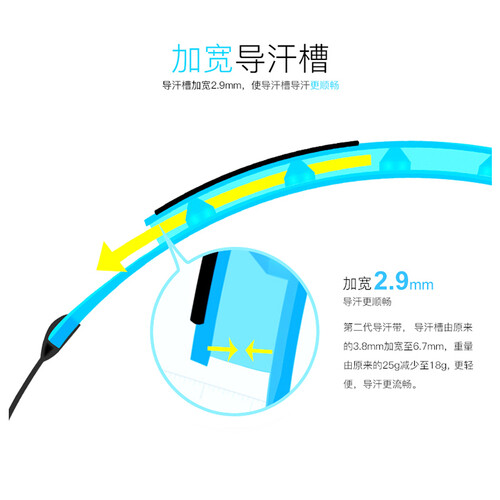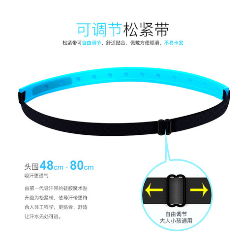 柔软品质硅胶,表面光滑,兼容头盔,易清洗。导汗槽两边分流,避免额头汗水影响视线。