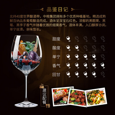 橡木桶窖藏陈酿出的葡萄酒,萃取了橡木中香味物质,酒体结构美观。口感醇厚协调,配以中、西佳肴,给人体验美的享受。