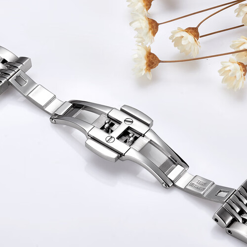 配备人工蓝宝石表镜,无惧日常磨损,尽享清晰读时。采用不锈钢双按蝴蝶扣,有利于日常开合,深受用户群体钟爱。