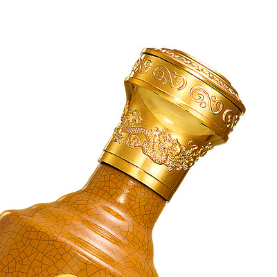 四川宜宾优质的水源,搭配上五种纯粮,酿制出特色的美酒。帝王黄主色调,搭配上精美龙纹浮雕瓶盖,大气十足。