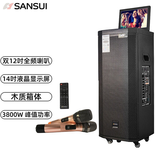 顶部搭载14寸高清显示屏,支持触控操作,想听的歌随心播放。搭载12寸低音喇叭和5寸高音喇叭,高低音均出色。