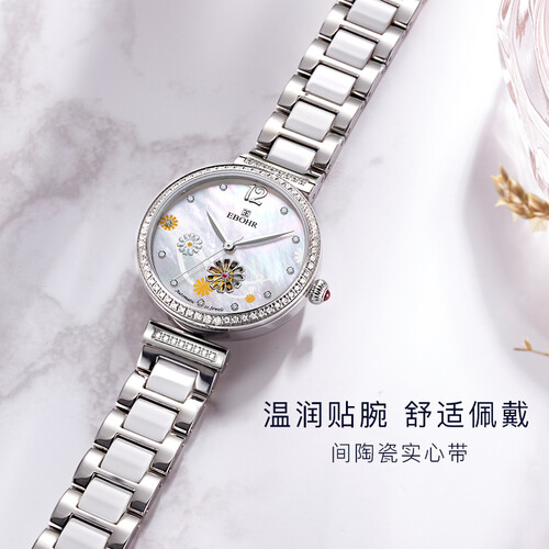 将甜美小雏菊点缀于表盘,散发清新活力气息,备受年轻女性青睐。壳身360°锆石萦绕,每个角度都让你沉醉其中。