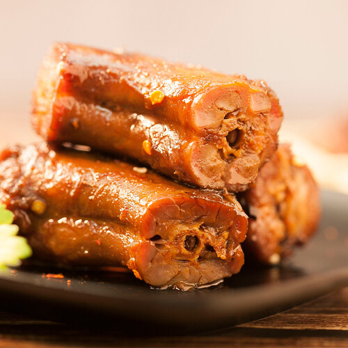 鸭脖的肉质细腻紧实,很有弹性,吃过之后满嘴的香醇,让你回味无穷。香辣口味直击味蕾,好吃又过瘾。荤素搭配,好吃过瘾。