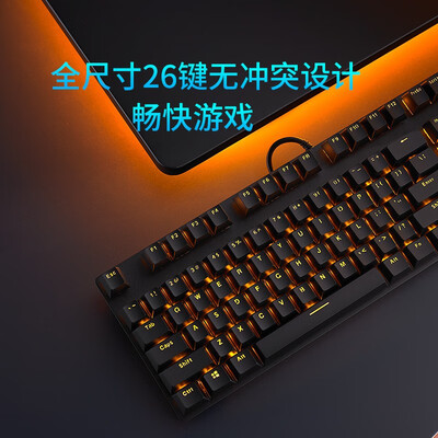 独特的金色光背光设计,典雅高贵,流露出不一样的气质。搭配黑色磨砂键盘质感,更具美观。104键无冲突,方便顺心。