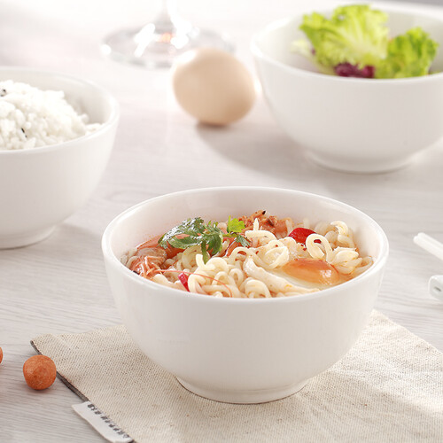 碗具采用加厚边口的设计,可有效防烫,让你吃饭更加舒心,优雅的器型配合纯白无花纹的设计,使得餐具更显大气素雅。
