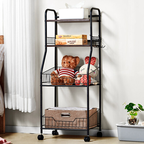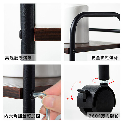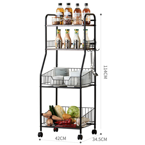 上层双纹木板设计,经过15MM加厚,可轻松放置电饭煲这个大家伙。下层使用双镂空收纳篮,可以将蔬菜快速沥水,防止腐烂。
