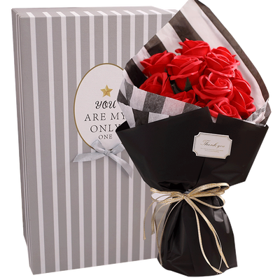 经典卷边玫瑰花,造型逼真精美,宛如真花一般热情的绽放,与明艳的大红色结合,尽情释放出你热烈的爱意。