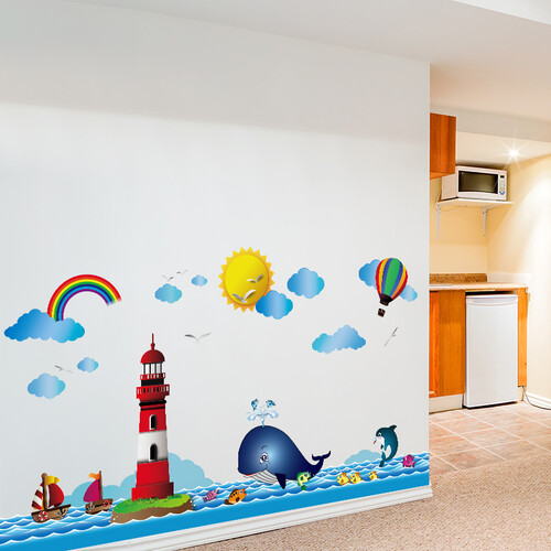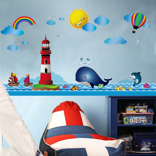 海洋风格为主题设计,让家中儿童感受,卡通梦幻感,营造美观生活环境。可贴合在家中多种部位,起到装饰作用,环境更加温馨。