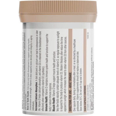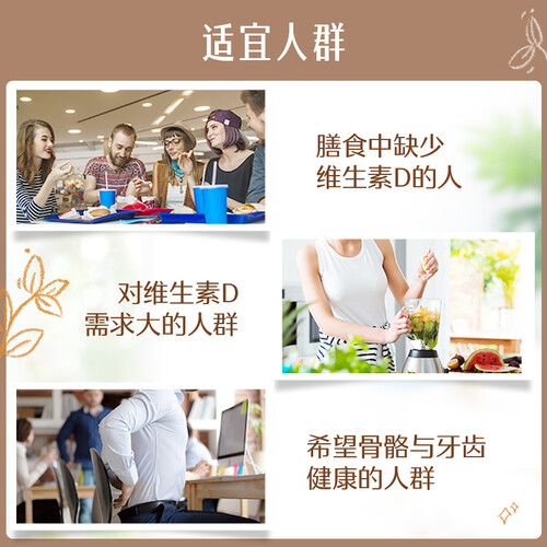 每一片含有1000IU的天然维生素D3,高含量易吸收,补充人体所需,适合对维生素D需求量大的人群服用。