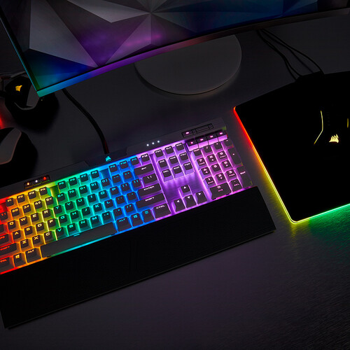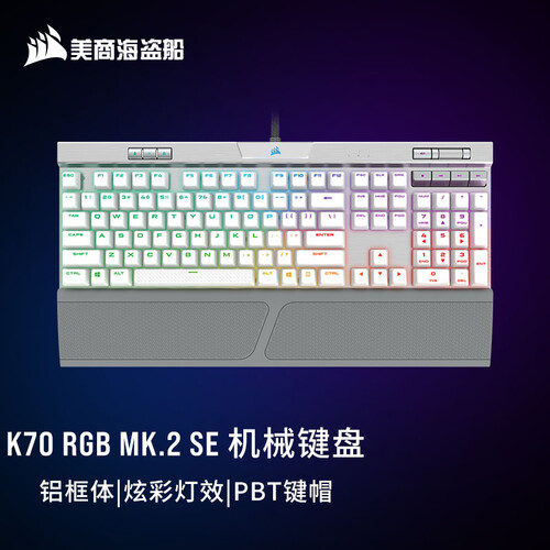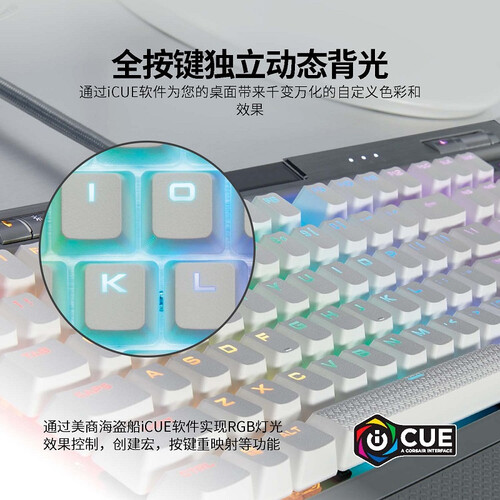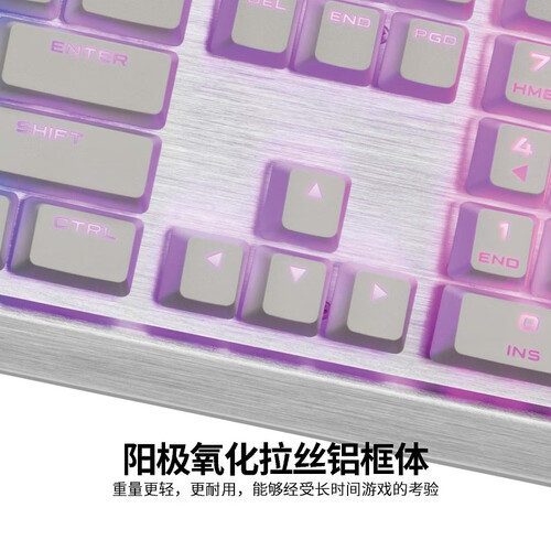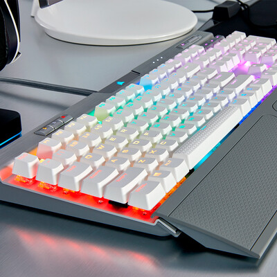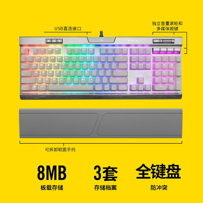 可拆卸软质腕托,在长时间游戏过程中提高舒适度;采用PBT双色注塑键帽,提供卓越的耐久性。