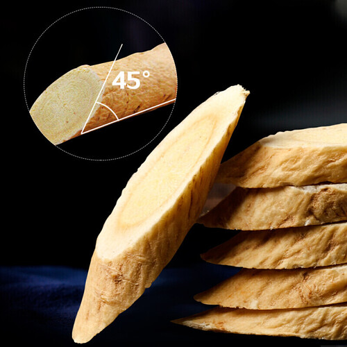 采用45°倾斜切片技术,使得每片黄芪大小均匀,厚薄适中,食用起来更方便。它还经二次严选,去除劣芪、残芪等,品质有保障。