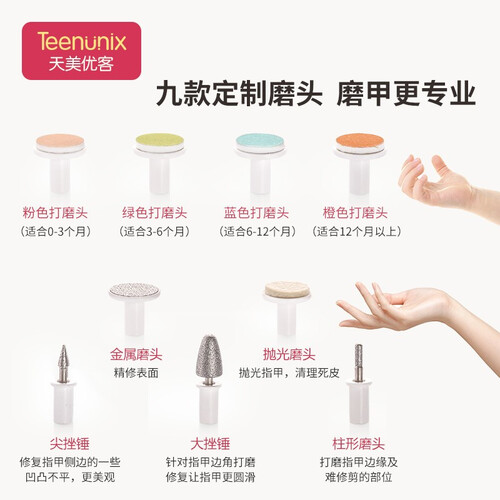 采用低振动马达,使用更舒适,宝宝不抵触,轻松磨去指甲尖角,防止宝宝抓伤皮肤;机身采用流线型设计,抓握更方便。