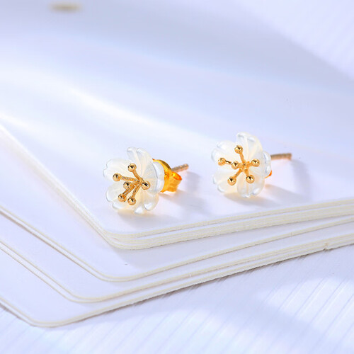 以白母贝材质打造的梅花造型,清新素雅,能够衬托出佩戴者自身典雅气质。而花芯以18K金制成,光泽亮丽闪耀,华美不俗。