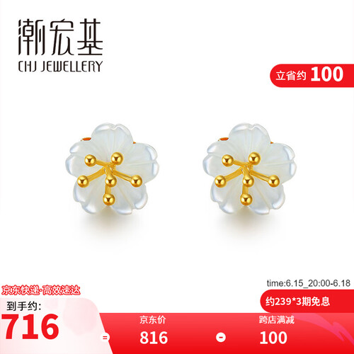 潮宏基 臻惜K金彩金耳饰